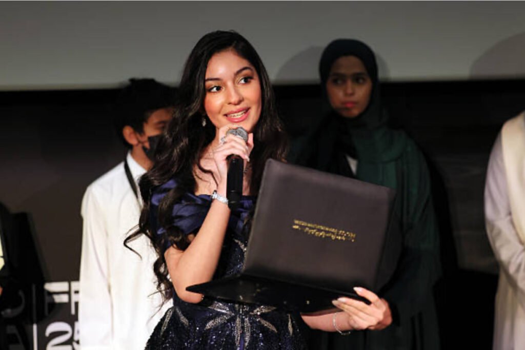Linda’s journey reached another landmark when she was selected as the youngest MC at the Red Sea International Film Festival. At one of the region’s most prestigious global cinematic gatherings, she presented the Voices of Tomorrow program, dedicated to empowering emerging filmmakers and giving the next generation of storytellers a global platform.